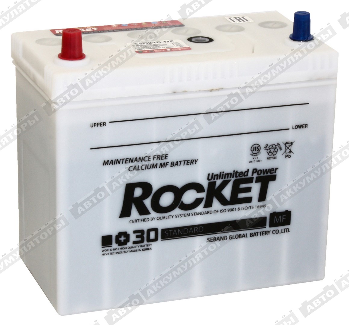 Новый аккумулятор ROCKET заправлен кислотным раствором, полностью заряжен и установлен в автомобиле для немедленного использования.
