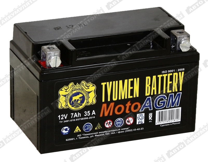 Мотоаккумулятор Тюмень 6МТС-7 AGM (YTX7A-BS)
