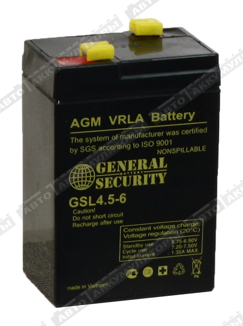 Свинцово-кислотные аккумуляторы General Security серии GSL разработаны для обеспечения резервным питанием систем охраны и безопасности, телекоммуникационного оборудования, промышленных объектов широкого назначения, работы в ИБП. Наилучшее использование батарей обеспечивается в буферном режиме. Достоинства: герметичность, надёжность и безопасность, высокая мощность выходного тока, малое внутреннее сопротивление, хорошая способность к восстановлению после глубокого разряда.